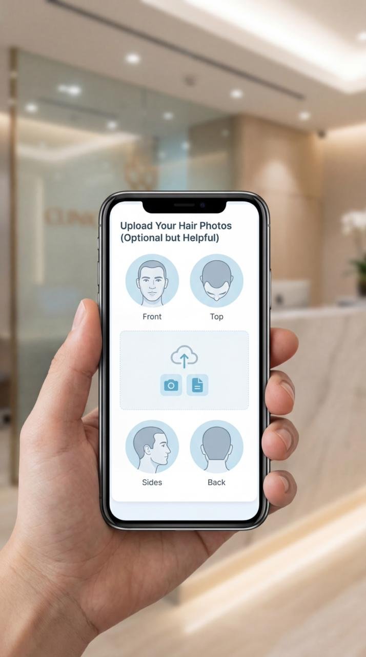Share your medical history and scalp photos for initial assessment.